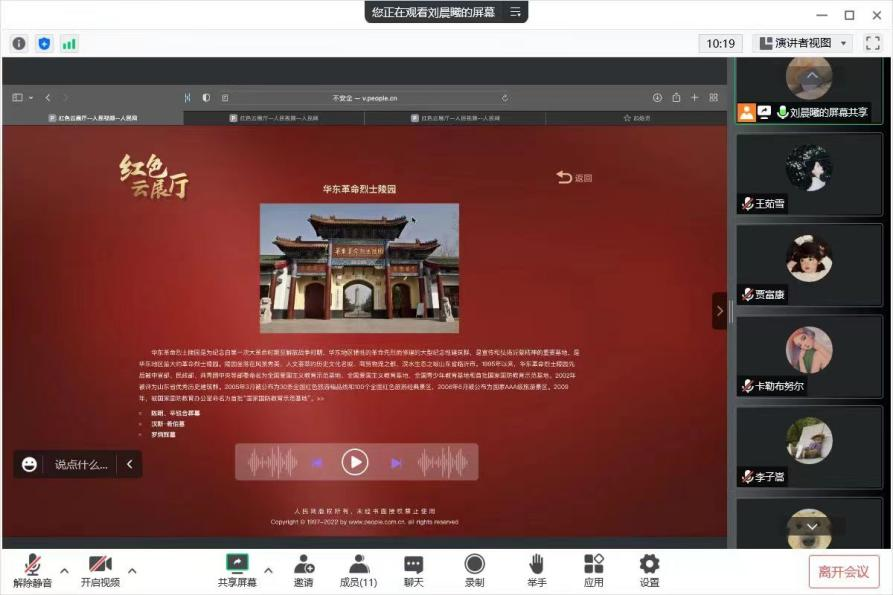 “历史是最好的教科书,也是最好的清醒剂。”本次“红色云展厅”结合前期党史学习的篇章和脉络,沿着百年党史的不同历史时期进行观看:建党初期、抗日战争时期、解放战争时期、中华人民共和国成立后的接续奋斗四个时期,主要观看中共一大纪念馆、大峰山革命根据地纪念馆、华东革命烈士陵园等重要展馆,直观地展示各个时期的奋斗历程,让人身临其境,感受党的百年历史,领悟其中蕴含的精神,引导党员同志深刻理解马克思主义为什么“行”、中国共产党为什么“能”、中国特色社会主义为什么“好”,增强热爱祖国、热爱人民、热爱共产党的坚定信念,激发立足本职岗位践行爱国之心、强国之志、报国之行的自觉行动。