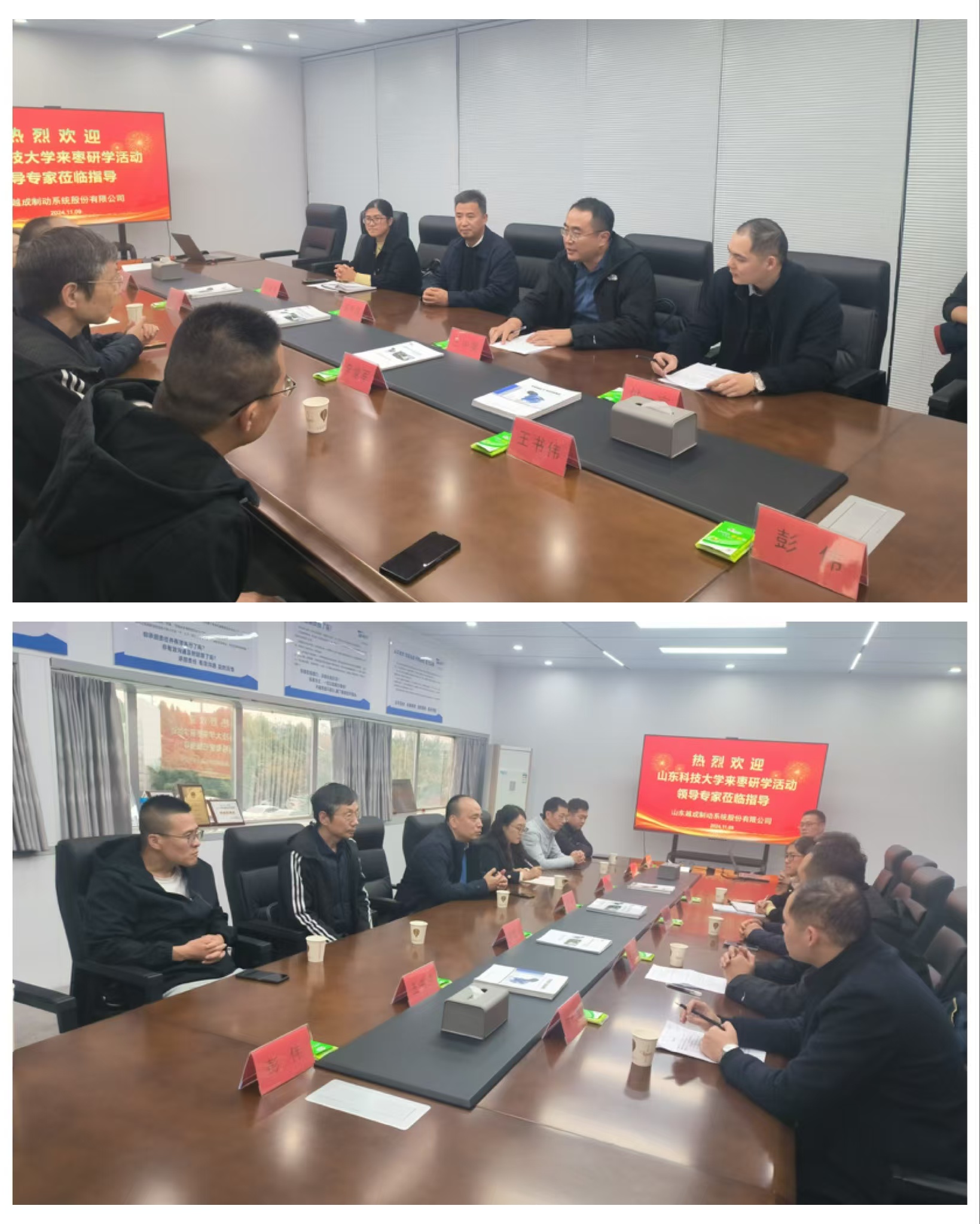 在参观之后,双方围绕行业动态、创业创新、产学研合作、人才引进、实习就业等关键议题进行了深入的交流和探讨,旨在为员工们搭建更广阔的就业平台,同时推动双方未来在科研、教学等方面的深度合作。