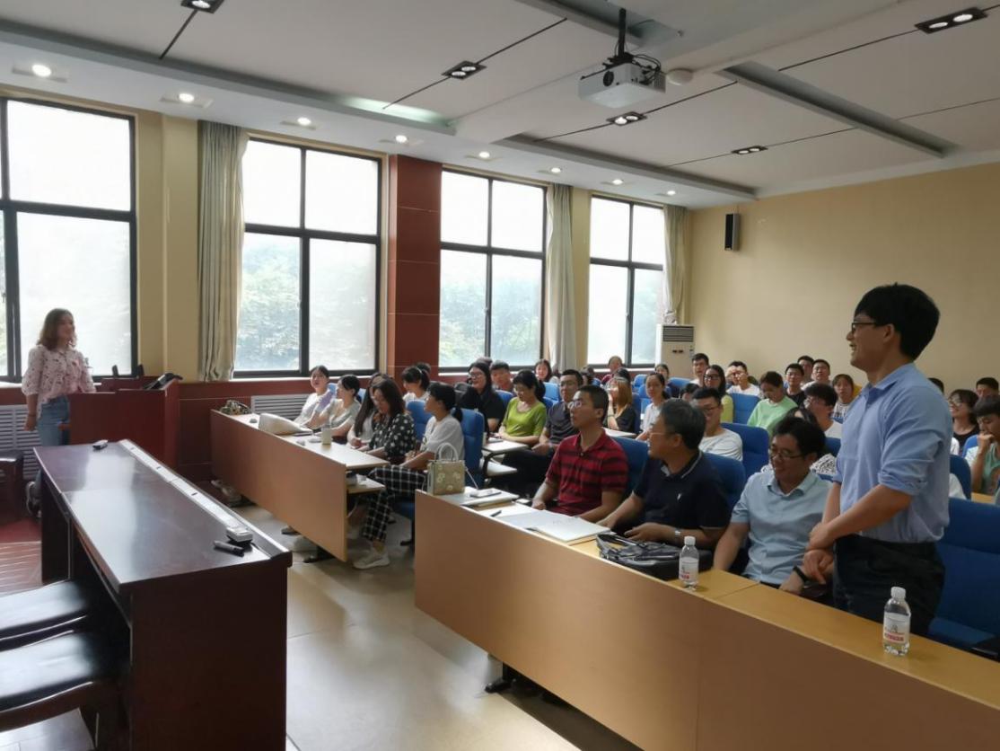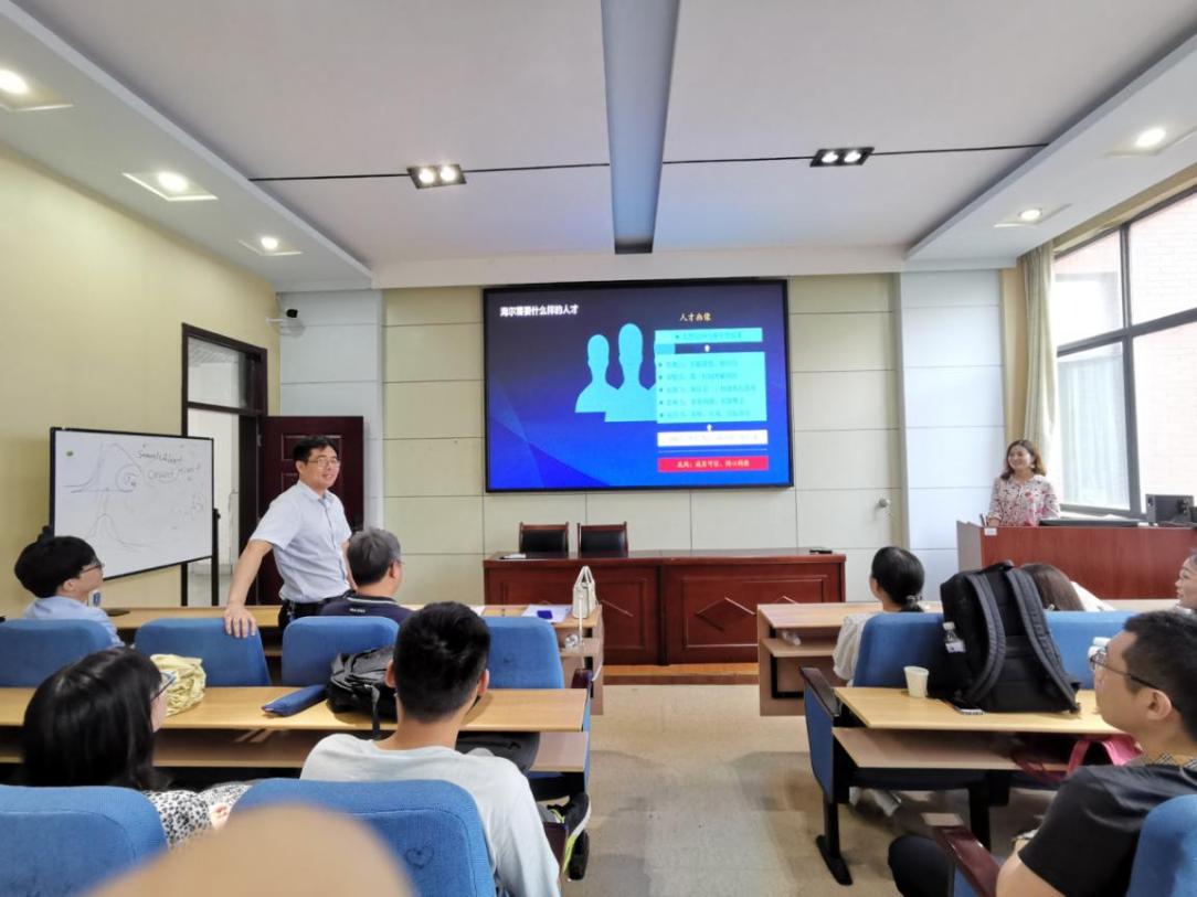 王炳成教授对柴娟再次回到母校表示热烈的欢迎,十分感谢她对学院员工培养、员工工作的支持,希望同学们能够学有所获,与杰出员工们一起共同促进学院的发展和进步。(物流系供稿)