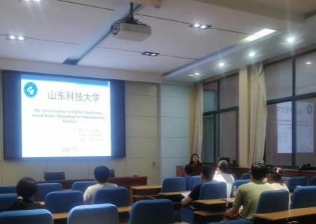 Telma同学以英文介绍了自己的研究进展与成果。她认为,从事全球业务的公司在其营销组合中逐渐纳入全球社交媒体平台,以吸引更多的受众。社交媒体网络能够更高效、更快捷、更容易地接触到不同的消费者群体。很多跨国公司能够在发布新品的第一时间就将他们的产品信息传达给目标受众,有了社交媒体营销,即便是小公司或企业集团就有机会在世界任何地方开展业务。基于此,Telma同学针对社交媒体背景下的品牌营销作了深入的介绍与探索,引起了在场同学的极大兴趣。