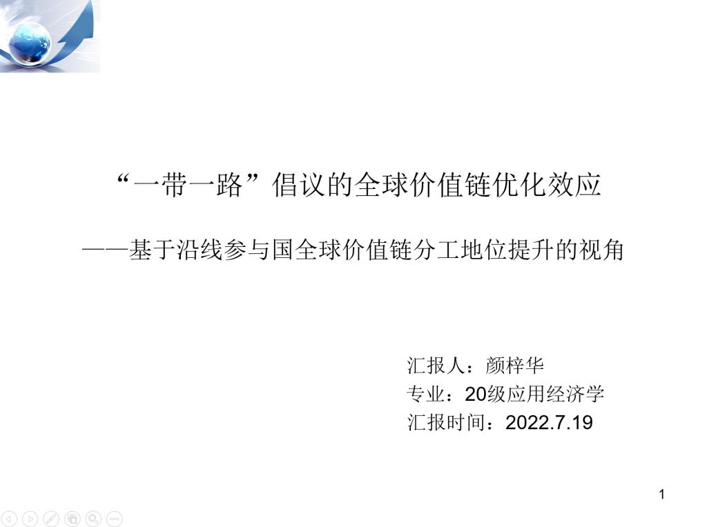 第一场:颜梓华同学以戴翔和宋婕2021年发表在《中国工业经济》的文章《“一带一路”倡议的全球价值链优化效应——基于沿线参与国全球价值链分工地位提升的视角》进行了讲解。文章基于沿线参与国全球价值链分工地位的特定视角,系统研究了“一带一路”倡议从“推动构建和优化全球价值链”的实践效果方面来看,是否已经取得了初步成效,而其作用机制又是什么。本报告结合文章内容,首先对通过理论分析阐述“五通”的中介作用机制,然后通过双重差分模型实证分析中国“一带一路”倡议的全球价值链优化效应,利用中介效应模型检验“一带一路”倡议促进沿线参与国全球价值链分工地位提升的作用机制。文章对进一步依托“一带一路”倡议,推动全球价值链分工朝着更加平等的方向发展具有重要意义。