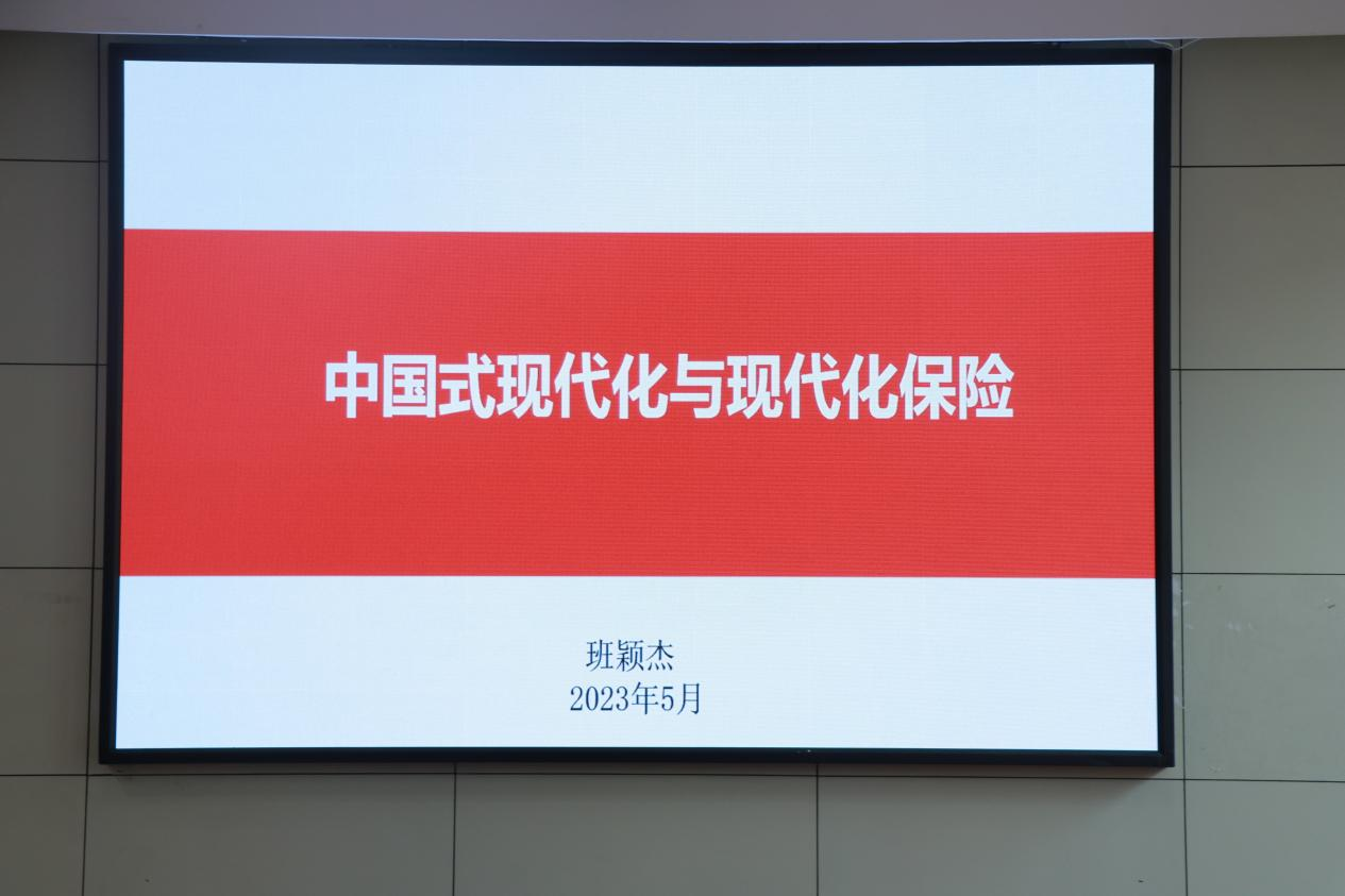 2023年5月13日下午,永利集团304am官方入口邀请中国人民保险集团人民再保险股份有限公司财务管理部负责人班颖杰女士,在J6-317报告厅做了以“中国式现代化与现代化保险”为主题的学术报告。