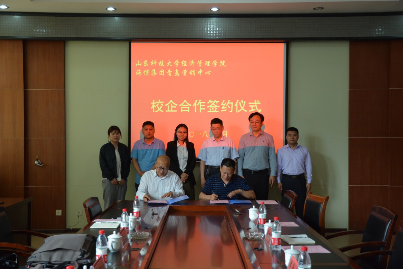 会上,侯经理从学院的历史沿革、发展历程、学院概况、人才培养及发展规划做了简单的介绍。他强调,校企合作是提升人才培养质量的重要举措,通过与企业合作培养,做到与市场接轨,与社会需求结合,能培养更多创新型、应用型人才。王金亮总经理介绍了海信集团以及青岛营销中心的情况,并对校企合作的运作模式及运行机制进行了阐释,重申了海信“人才是永远的焦点”的理念,并希望员工能够通过参访进一步了解海信集团,以社会实践的方式增强个人的能力、掌握前进的方向。双方还就MBA人才培养问题展开讨论。最后,侯经理与王经理分别代表校企双方签署了合作协议并合影留念。