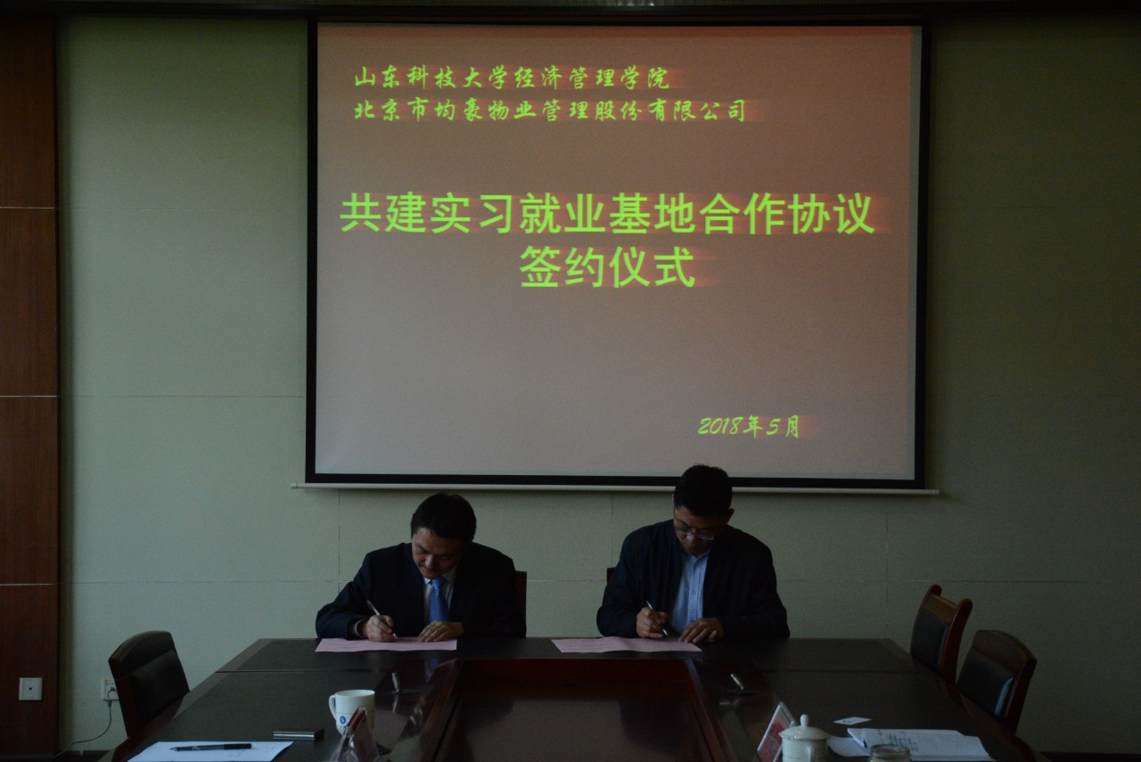 5月3日下午,永利集团304am官方入口与北京均豪物业管理股份有限公司共建实习就业基地合作协议签约仪式在学院楼309会议室成功举行。公司党委书记杨佑灵、副经理马有才、院团委书记陈永磊,均豪集团人力资源部总经理白洁晶、集团人力资源部招聘经理付陆、均豪山东分公司行政人事部高级经理孙妮妮等共同出席会议。