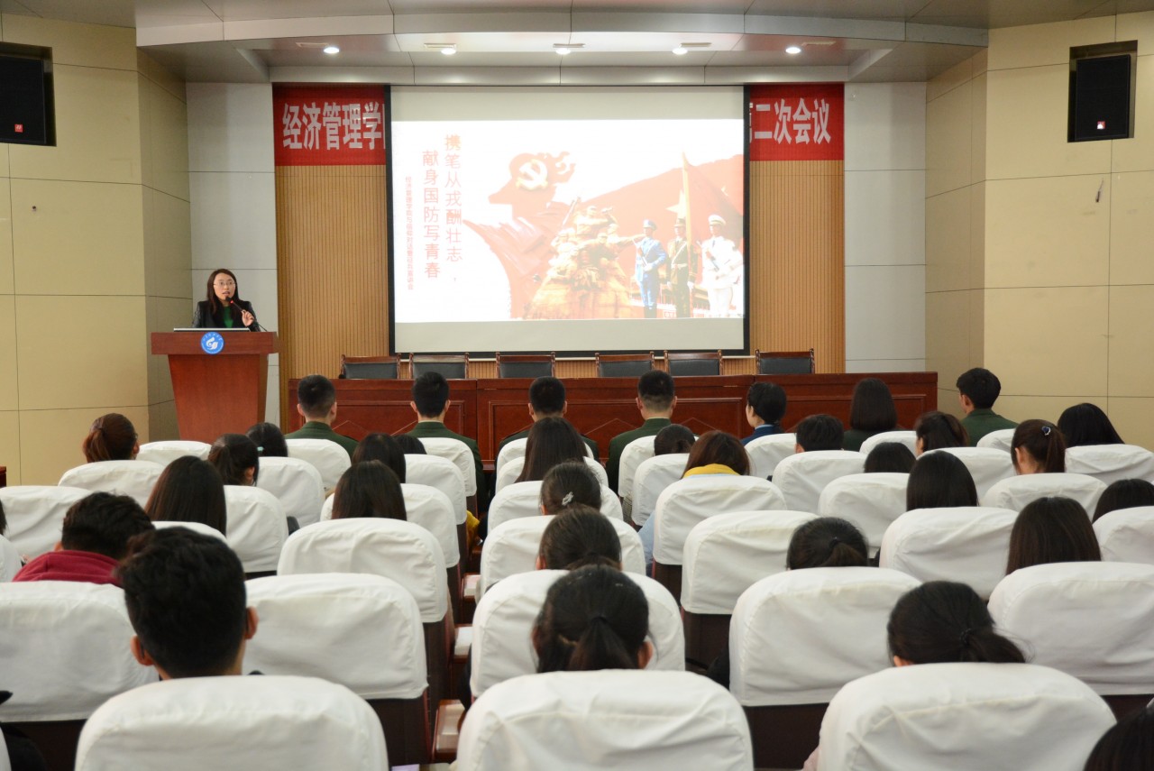 震撼人心的征兵宣传片让同学们热血沸腾,对军人对祖国肃然起敬。随后,团委老师张蕾介绍了征兵宣传和国防教育的意义、院近年来参军入伍情况及征兵相关政策,为员工算了经济账、政治账、个人成长账,希望同学们能够通过此次宣讲会了解国家征兵政策,多一种人生选择,鼓励在校老员工站在时代前列,勇敢接受祖国的挑选,把人生理想融入强国梦强军梦的伟大事业中,以实际行动投身军营报效国家!