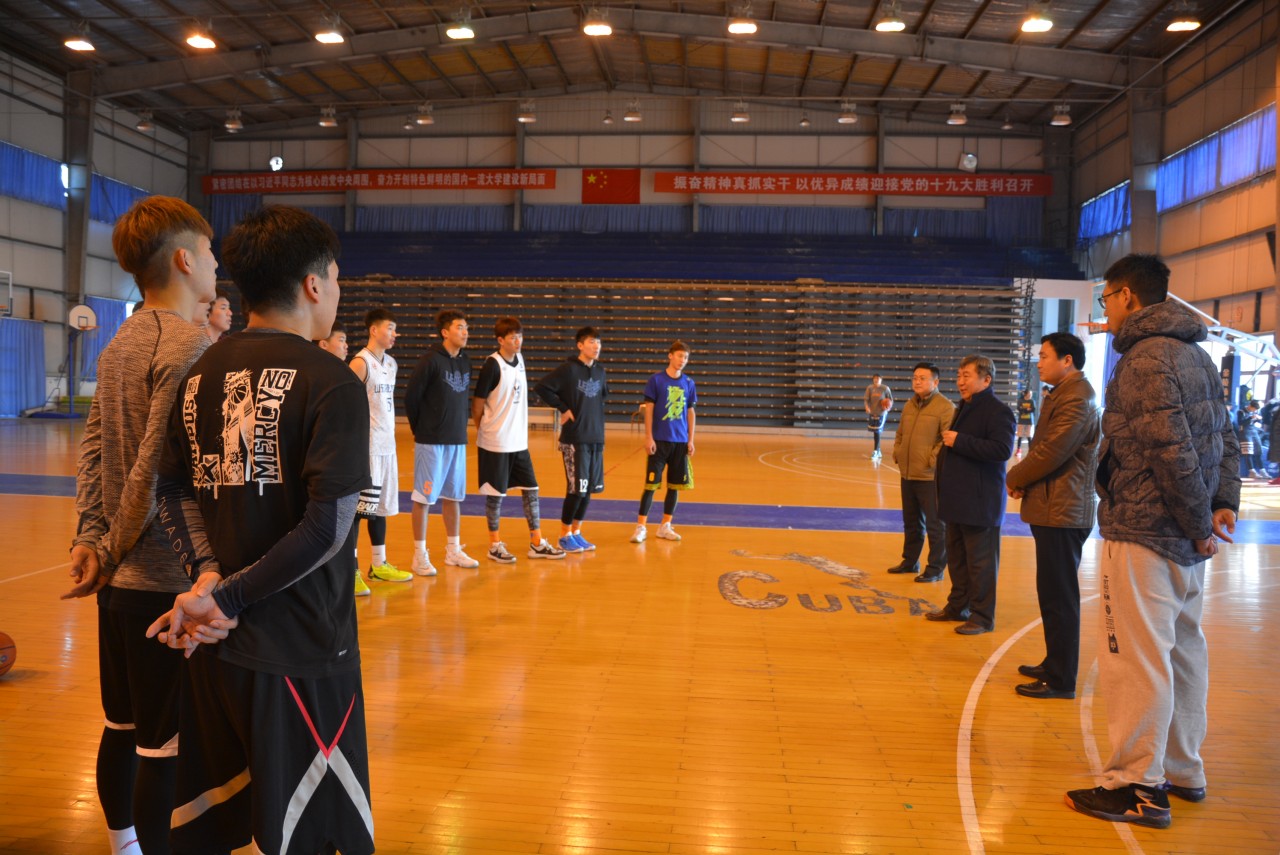 今年共有26名留校冬训的篮球队员,其中女篮11人,男篮15人。在校体育馆,体育学院经理、直属党支部书记田启发、杨佑灵和刘洪锋同男女篮教练和队员亲切交谈,感谢教练和队员们的辛勤付出,鼓励队员再接再厉,再创佳绩。杨佑灵详细询问了队员们的住宿、训练、学习和生活情况,嘱咐大家留校期间有困难及时向辅导员老师反映,注意安全,科学训练,不断提高专业水平,同时表达了对教练和队员的新春祝福。