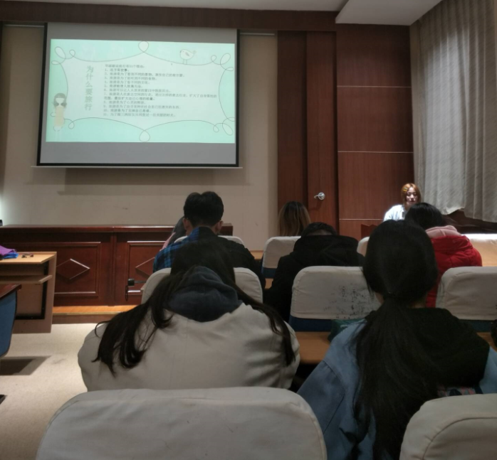 交流会伊始,尹岑琦为同学们播放了他们团队制作的小视频,向大家分享了关于护肤的生活小常识。接着,她为同学们讲解了护肤的重要性及保养皮肤的常用方法,同学们听得津津有味,整个会议室基础洋溢着轻松愉悦的氛围。随后,她用几张女生妆前妆后的对比图向大家阐述了正确的化妆步骤,为女同学规避化妆误区提供了丰富的经验。在交流完护肤心得后,窦梦瑶为大家分享了她的旅行经历。她给大家展示了自己所游历的胜地美景图,她希望同学们能够通过旅行的方式,释放自己的心灵,增长自己的见识,扩充知识面,多接触自然世界,用旅游的方式来丰富自己的校园生活。最后,她为同学们分享了一些旅行中的拍照小技巧,同时展现了自己的旅游梦,赢得了大家的热烈掌声。