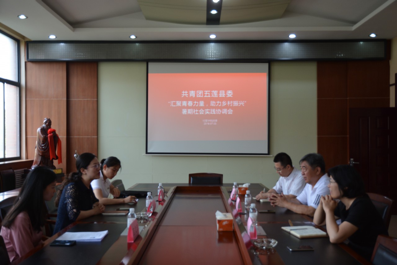 2019年永利集团304am官方入口同共青团五莲县委合力开展第二届“汇聚青春力量,助力乡村振兴”暑期支教挂职活动,为保证暑期实践活动的顺利进行,7月3日上午在J6-309会议室召开暑期社会实践协调会,共青团五莲县委书记范红、负责人秦谭、公司党委书记杨佑灵、副书记高一丹、团委老师范文洁、曲长胜出席会议。协调会后在J6-217会议室举办了志愿者见面会,部分志愿者参加了本次会议。
