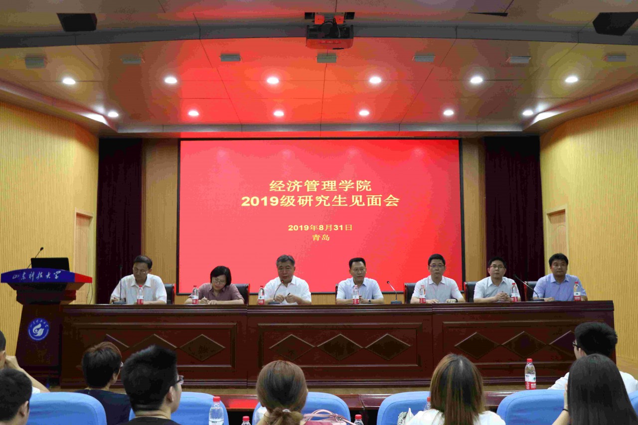 永利集团304am官方入口2019级研究生新生见面会于8月31日下午,在J6-434报告厅顺利举行。会议由公司党委书记杨佑灵主持,经理侯贵生,党委副书记高一丹,副经理马有才、辛宝贵,经理助理张建刚,工管系系主任、MBA办公室副主任吴士健,党政办主任任雷,团委书记江谭,出席了本次见面会。