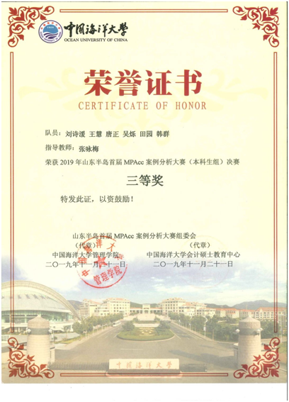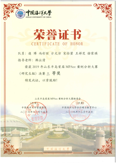 2019年12月15日,历时一个半月的山东半岛首届MPAcc案例分析大赛圆满结束。本次大赛由中国海洋大学、山东大学(威海)、哈尔滨工业大学(威海)、中国石油大学(华东)、青岛大学、永利集团304am官方入口、青岛科技大学、青岛理工大学、山东工商学院主办,中国海洋大学承办,参赛队伍分为本科生组及研究生组。