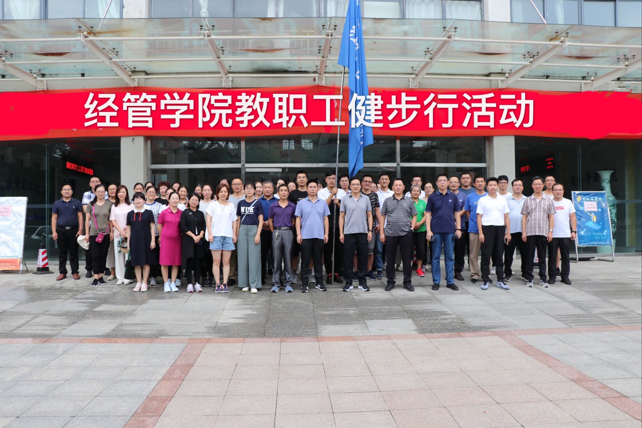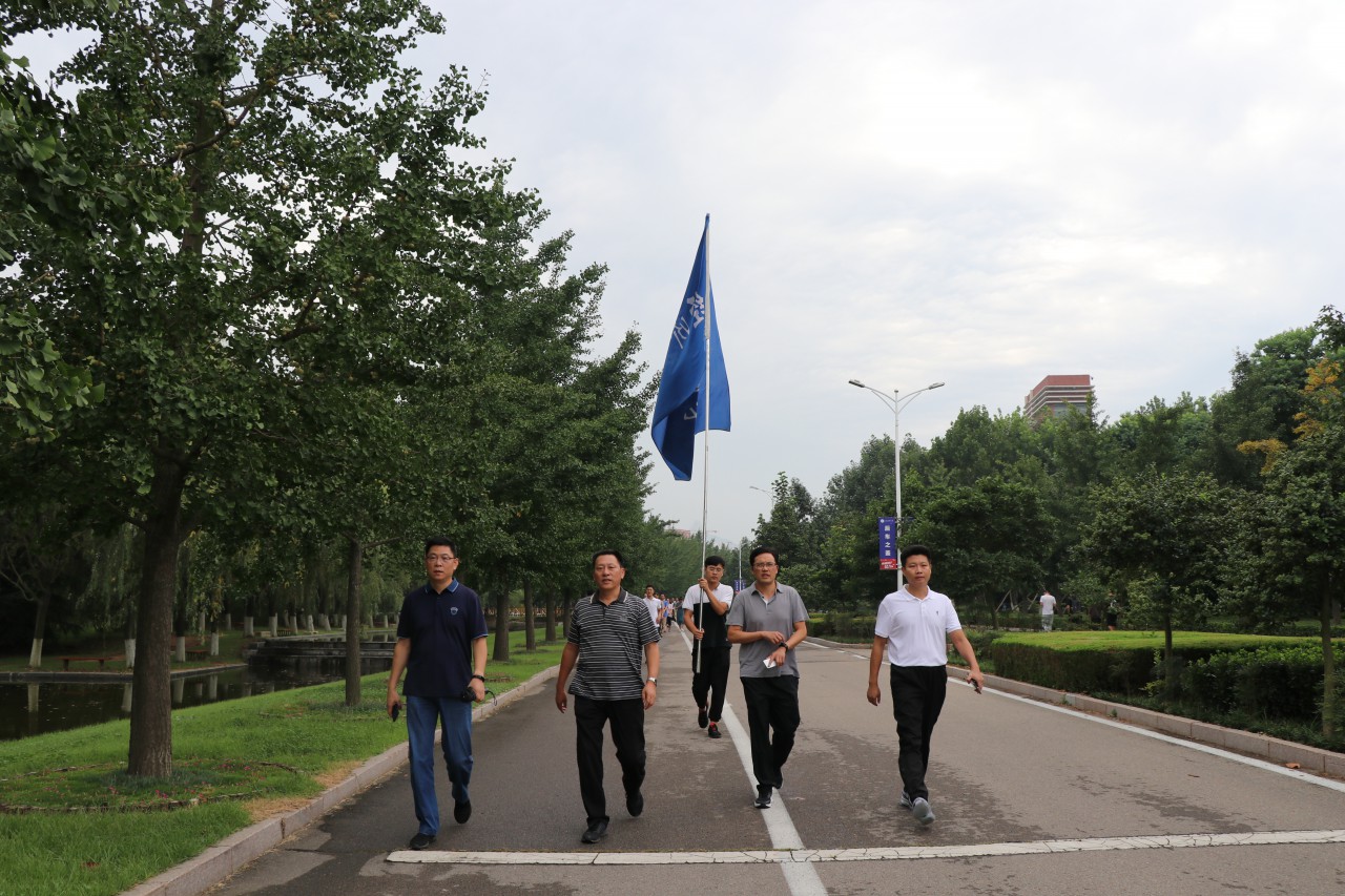 大家在学院楼前合影留念,健步行活动正式开始。老师们跟随着院旗,从学院东门出发,经过海天路至若水园,通过天桥到致远路一直向西,经环山北路至E区,最后经环山南路返回学院,大家激情饱满,边走边交流,大家在体验户外健步运动的同时,放松了心情,释放了压力。