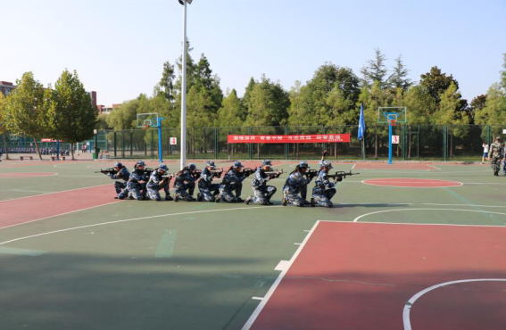 闭训仪式在庄严的国歌声中拉开序幕。伴随着级激昂的阅兵式进行曲,庄严的阅兵仪式正式开始。由雄鹰连、猛虎连、钢铁连、尖刀连组成方阵队伍走过主席台,整齐划一的动作、恢弘响亮的口号充分展现了经管学子的昂扬积极的精神风貌。随后,军训团以饱满的精神进行了擒敌拳和匕首操的表演,新生们眼神坚毅,动作干净利落。在战术表演环节,新生们在拳脚挥舞和枪术展示之间,表现出了军人刚健有力的气魄,彰显了经管新生们昂扬风貌。由60人组成的鼓词朗诵表演,演绎着新一代青年的朝气蓬勃与优秀品格。