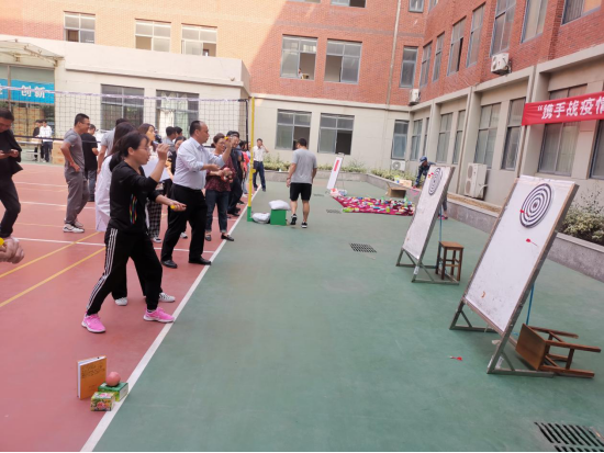 本次运动会共设置了打保龄球、夹乒乓球、羽毛球击准、掷飞镖、抢凳子、蒙眼敲锣、踢毽子和套圈八个趣味比赛项目。各项比赛轻松有趣,将健身、娱乐融于一体,比赛项目既考验选手的个人能力,也考验团结协作能力,极大的激发了教职工们的热情。比赛场上,每一位教职工笑容满面,精力充沛,积极踊跃地报名参加各项比赛项目。在欢声笑语中,运动会圆满结束。