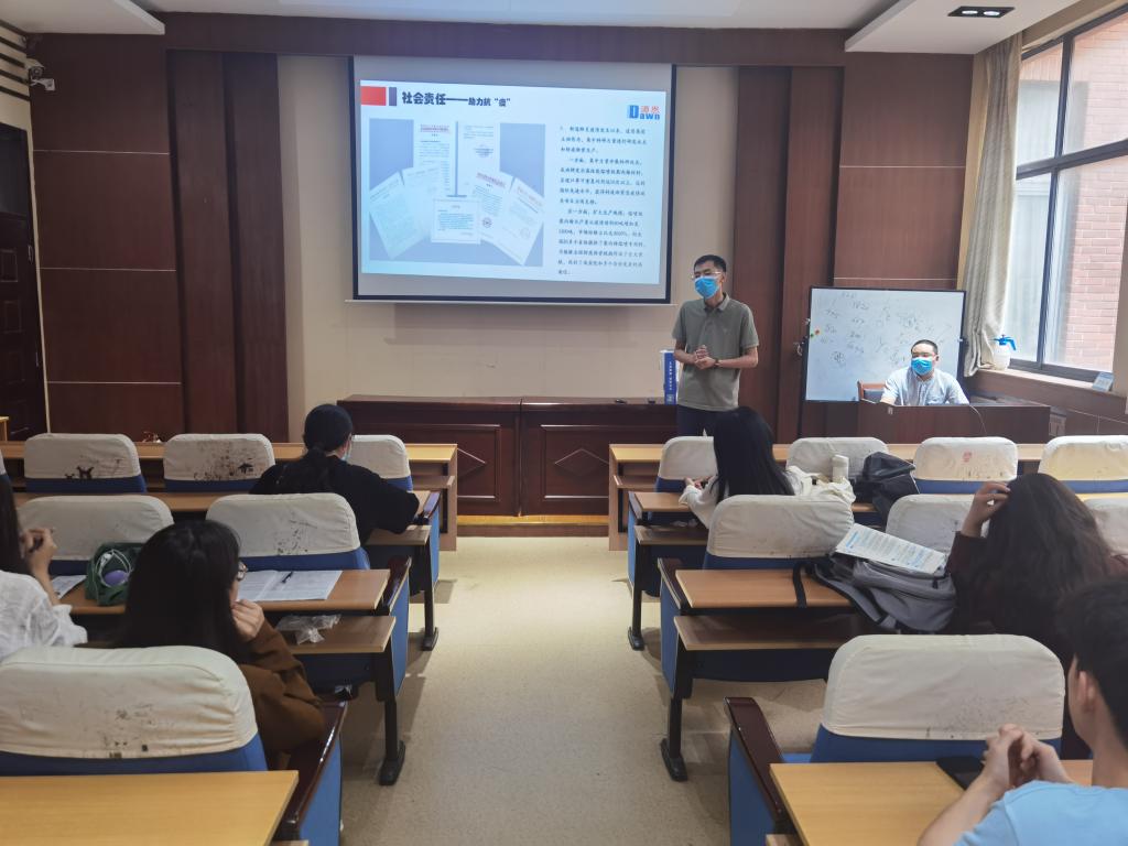 会上,经理侯贵生对道恩集团领导一行来校交流招聘表示热烈欢迎,并介绍了学院整体情况,指出学院将进一步加强校企合作,实现培养人才与企业需求的精准对接。高一丹向企业介绍了学院的学科专业设置和人才培养有关情况,希望与企业建立长期合作机制,为企业输送更多优秀人才。道恩集团人力资源部部长战福东表示,企业在带动当地经济发展的同时,更肩负着社会责任,并希望通过此次宣讲招聘来吸纳更多的优秀人才。会后,企业于J6-217开展了招聘宣讲,并收取员工简历,与员工进行了一对一交流,招聘工作取得了实效。