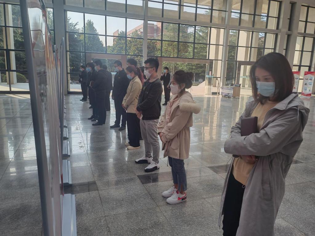 随后,全体成员前往图书馆参观师生书画摄影艺术作品展。展览展示了公司师生在书画摄影艺术等方面取得的丰硕成果,具有浓郁的时代气息和较高的艺术价值,折射出师生同心向党的使命担当和时代精神。