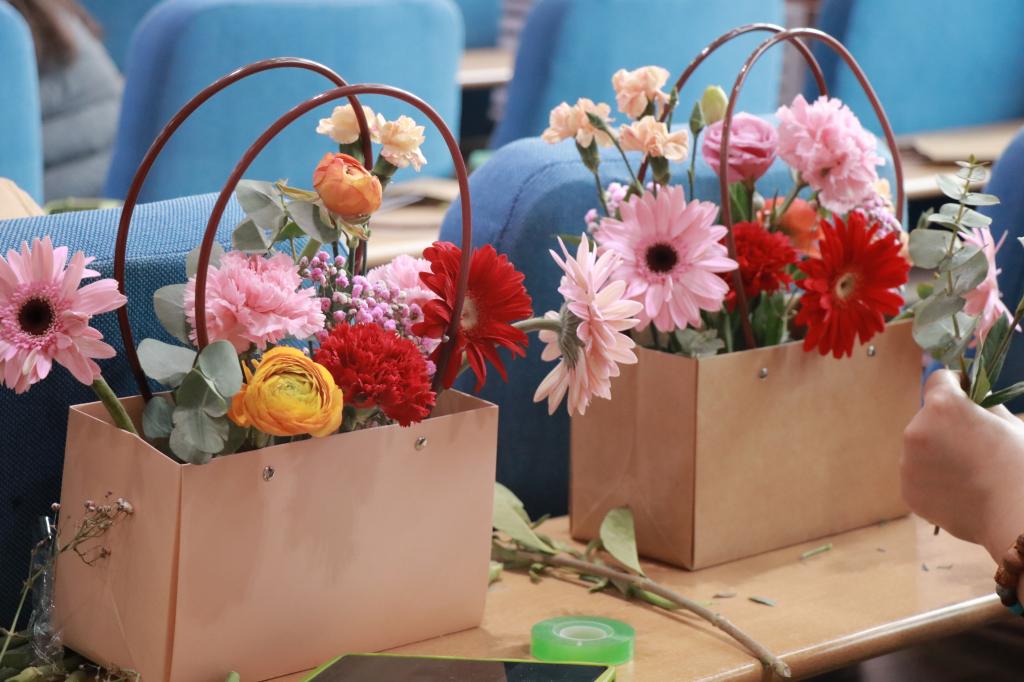 活动期间,花艺师为全体女教职工讲述了插花的种类和原则,插花中要注意的色彩应用、主次关系、造型平衡,以及鲜花保养常识等内容。在花艺师的精心指导下,在座的女教职工结合各自手中的花材特点和审美情趣,从鲜花的取材、剪叶、布局开始,不断地尝试和实践。经过大家精心巧妙的构思,制作出了一盆盆赏心悦目、错落有致、独具创意的插花作品。