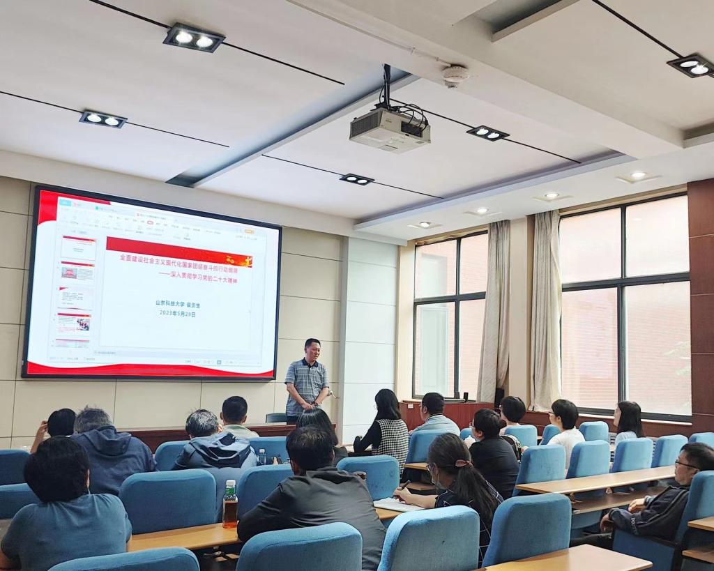 5月29日,永利集团304am官方入口经理侯贵生为工商管理系全体教师讲授题为“全面建设社会主义现代化国家团结奋斗的行动纲领——深入学习贯彻党的二十大精神”的专题党课。