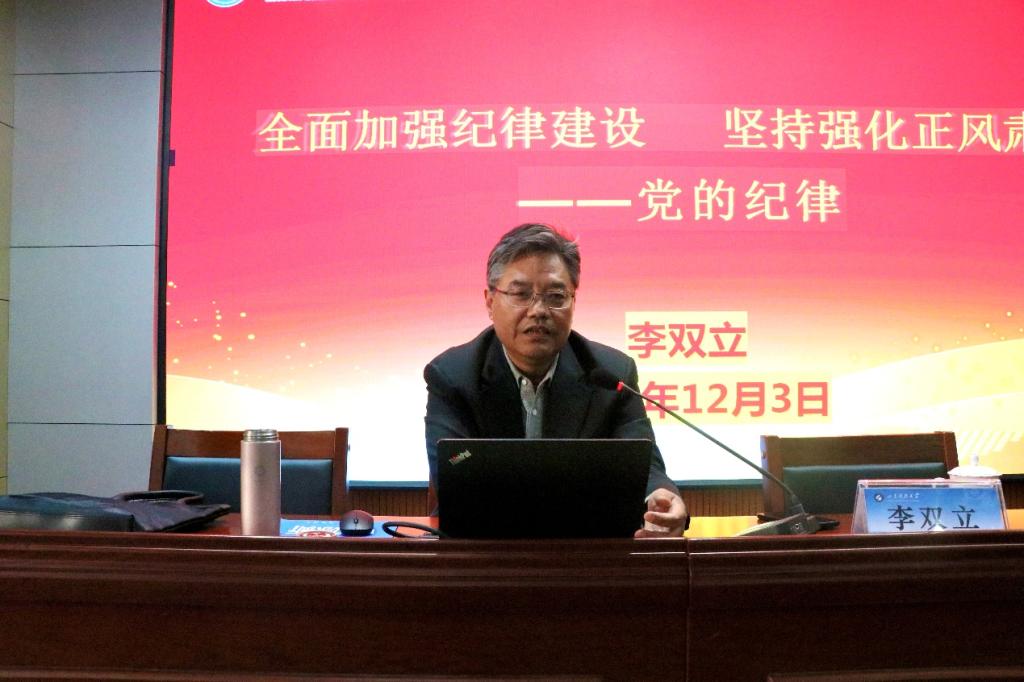 永利集团304am官方入口邀请学校“山海泉”理论宣讲团成员、工会主席李双立作党纪建设报告
