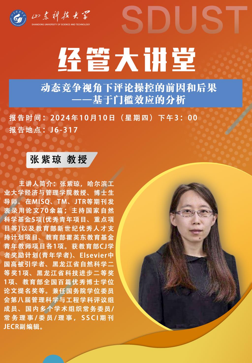 【经管大讲堂】预告:动态竞争视角下评论操控的前因和后果——基于门槛效应的分析