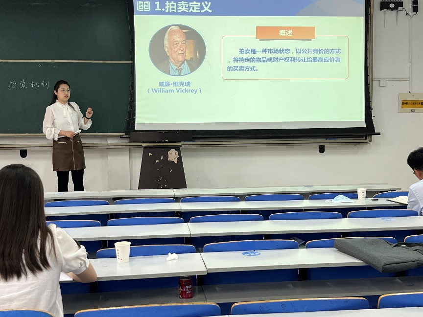 观摩课上,姜力文老师进行了20分钟的教学展示。她结合实际案例,深入浅出的讲解了《博弈论导论》课程中有关拍卖机制的问题。讲课结束后,与会专家从不同视角对姜老师的授课进行了现场点评,提出了很多精准而宝贵的建议。据悉,姜力文老师即将参加山东省青年教师讲课比赛,通过这次赛前的练习和专家的精准指导,姜老师的讲课水平得到了进一步的提升。