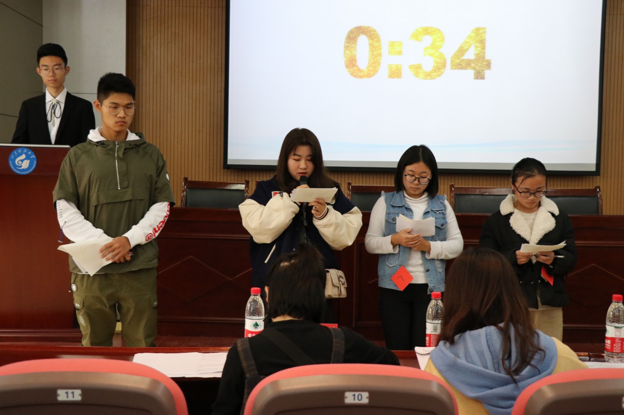 经过初赛的选拔,25位选手脱颖而出进入复赛。复赛共分为两轮,两轮比赛赛制相同,由各小组随机抽取讨论题目并进行为时五分钟的讨论。选手们就“儿童触网低龄化”、“对互联网‘+’的态度”、“垃圾零散投放点改为定时定点投放”等热点问题进行思考,并言简意赅、清楚明晰地表达了自己的观点。比赛中场,进行了小游戏“心有灵犀”,缓解了紧张的比赛气氛。点评阶段,评委王月和李晓宇根据自身比赛经验为选手提出改进建议,鼓励选手增强自信心。经过激烈的角逐,李庆航、谭相尧、冯亚楠、张立业获得优秀团体奖,郭宇、田媛媛、孙翠雪、杨晨获得优秀奖,刘玉龙获得三等奖,冯亚楠、孟春雪获得二等奖,李庆航荣获一等奖。