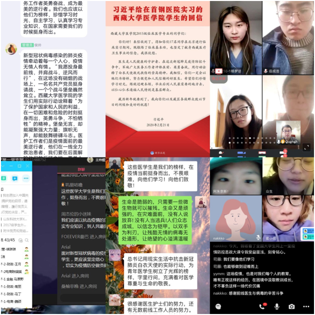 近日,习近平总书记给在首钢医院实习的西藏大学医学院员工回信,肯定他们献身西藏医疗卫生事业的志向,勉励他们练就过硬本领、服务基层人民。永利集团304am官方入口组织全体师生开展学习,各党支部通过线上主题党日的形式开展学习研讨。