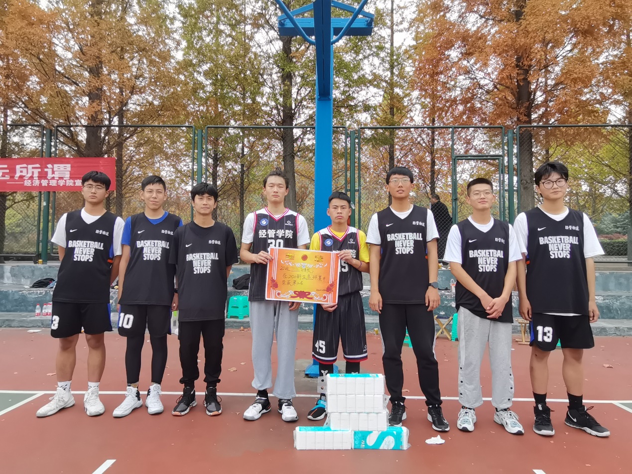 工管篮球队和物流篮球队进行冠亚军角逐。上半场,工管与物流两支队伍势均力敌,不分上下,在下半场比赛中,工管队在韩康的带领下,团结拼搏,巧妙配合,工管篮球队以35:24的成绩夺得本次篮球赛的冠军,韩康也赢得了全场MVP。物流队荣获亚军。会计篮球队与国贸篮球队进行了季军争夺赛。经过激烈比赛,会计篮球队以44:33的成绩领先,夺得季军。国贸篮球队也凭借其优异的表现获得第四名,金融篮球队获得精神文明奖。