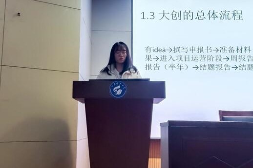 分享会中,崔梦洁谈到在准备大创比赛的过程中要关注到项目具体类别、总体流程,并向同学们分享了学院同学可以参加的创新创业类的比赛以及如何撰写计划书等内容,同时向同学们提出了一些关于创新创业竞赛方面的建议,同学们针对自己的疑惑纷纷踊跃提问,崔梦洁一一为同学们进行了解答。