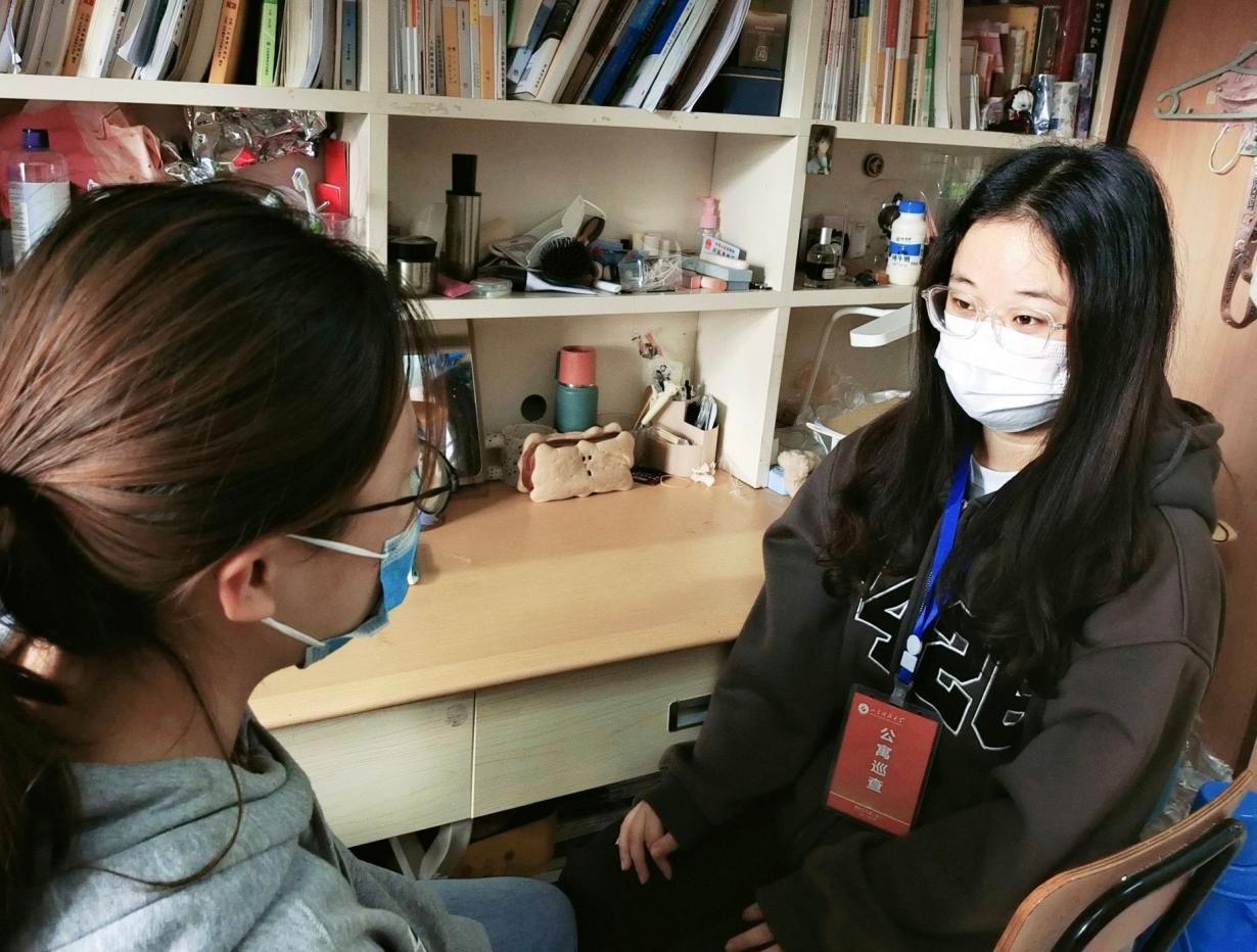 “老师好,今天下午6层公共区域无堆放垃圾,各宿舍一日三检和通风消毒记录本检查过了都有按时填写,楼下值班同学反馈所有同学出宿舍都戴口罩,及时垃圾下楼,您放心吧!”员工层长金融学21级2班游文雨按时跟辅导员汇报检查情况。正是网格化管理的每一环负责人都勇于担当、默默付出,才确保了疫情期间员工的安全、和谐和稳定。