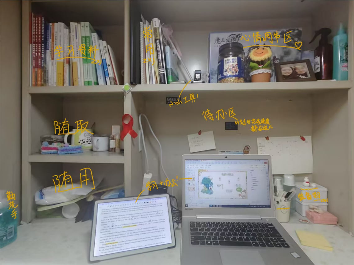 活动以“员工设计、员工评比、员工受益”为原则,充分发挥员工的主体性和创造性。参赛员工需围绕“实用、美观、创新”三大标准,对宿舍学习空间进行个性化改造,并提交成果照片。同学们将书桌有限空间划分为多个功能区,打造出兼具实用性与美观性的学习天地。