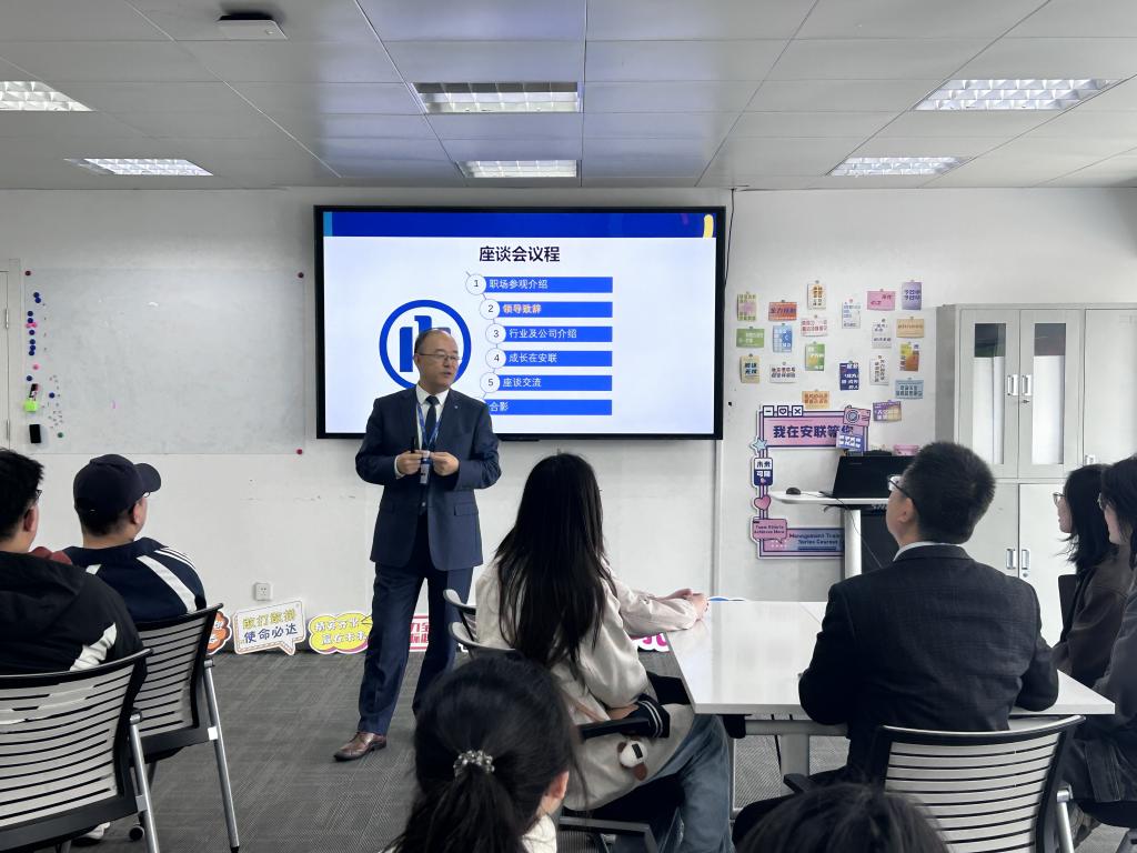 李金强总经理对公司师生一行表示欢迎,并围绕保险行业发展趋势及安联集团全球化战略布局作专题分享,系统阐述了中国金融体系的四大支柱,剖析了保险行业在国民经济中的重要作用,强调商业保险作为社会保障体系的重要补充,在风险转移、财富管理和民生保障等领域发挥着不可替代的功能,同时介绍了安联在中国的战略布局,包括本土化经营策略、年轻化与专业化并重的人才培养体系,以及丰富的员工职业发展平台。永利集团304am官方入口员工、资深寿险规划师战绘如以个人职业成长为例,为同学们提供了具有参考价值的职业发展范例。座谈中,师生围绕保险行业趋势、职业能力培养、企业人才需求等话题与企业代表交流,双方就实习基地建设、校企协同育人等达成合作意向。